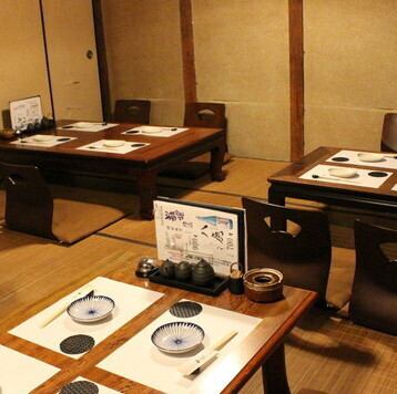 <在雅致的榻榻米房间里> 榻榻米房间营造出宁静的日式氛围,并配备了三张可供四人就餐的桌子。它也可以用于举办约10人的宴会。我们期待您的光临。